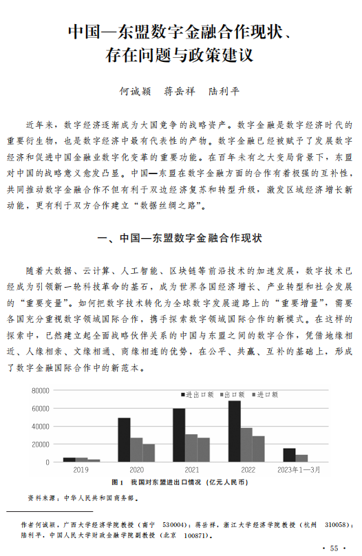蒋岳祥教授、中国人民大学财政金融学院陆利平副教授的文章在《中国—东盟数字金融合作现状、 存在问题与政策建议》在《中国社会科学(内部文稿)》发表。