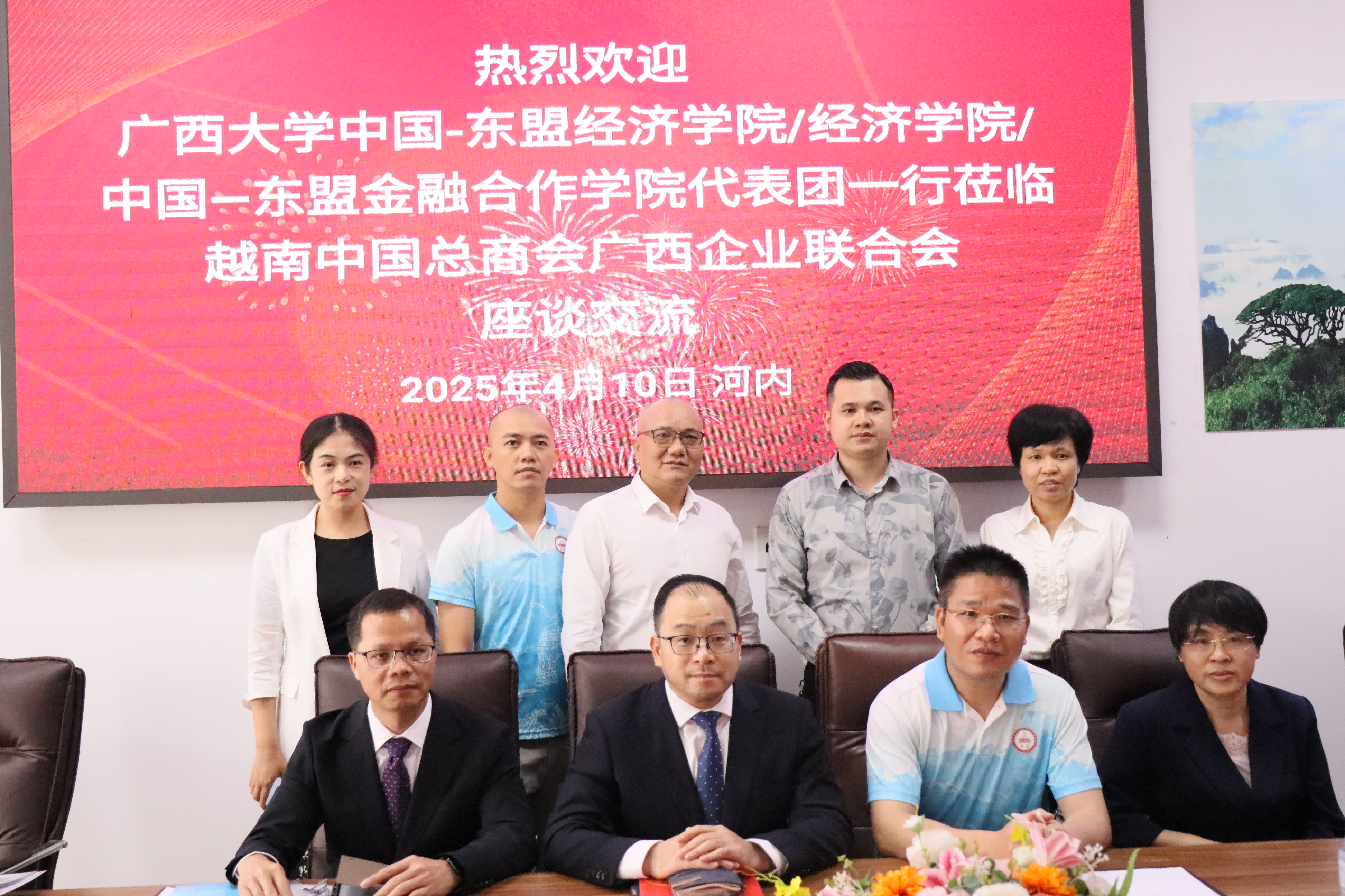 在越南中国总商会广西企业联合会,监事长苏日好律师及骨干会员热情接待了代表团一行。双方就广西企业在越南的产业布局升级、中资企业在越南面临的挑战及如何利用广西的地缘优势促进中越跨境产业链、供应链的深度融合等方面进行了交流。罗诚表示,学院将充分发挥自身优势,为在越中资企业提供智力支持和人才保障,促进健康长远发展。苏日好表示,联合会将积极支持学院在越南的科研活动、协助学生实习就业和留学生招录等工作,全面支持学院培养面向东盟的国际化人才。