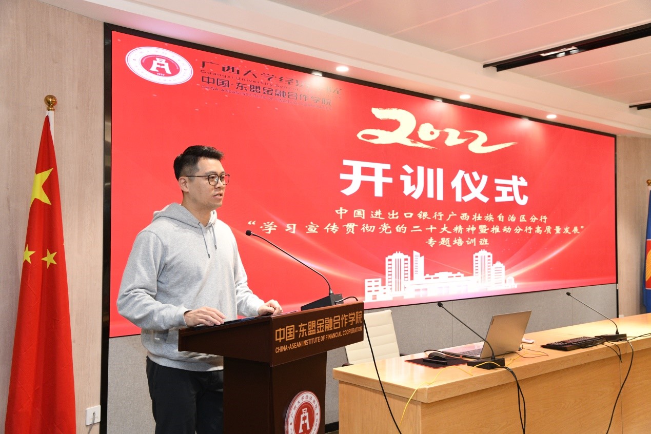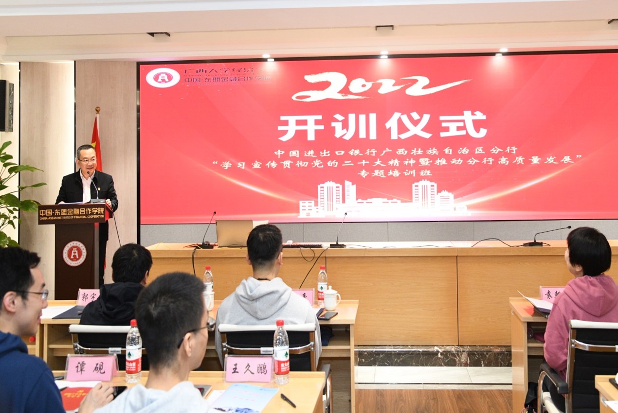 举办以“学习宣传贯彻党的二十大精神暨推动分行高质量发展”为主题的专题培训。中国进出口银行广西分行彭豪行长、学院李光辉院长出席开班仪式并致辞。