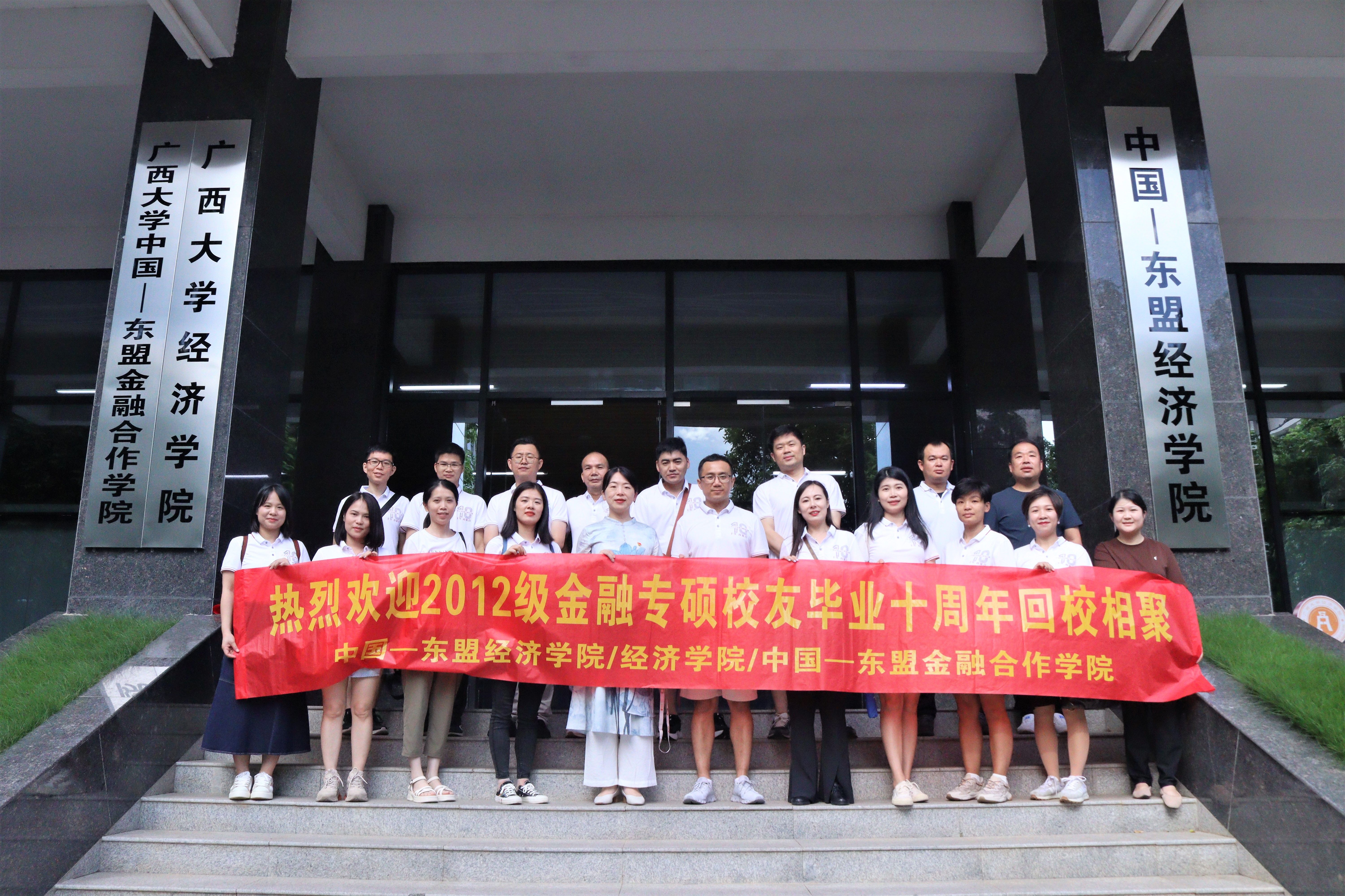 /中国—东盟金融合作学院2012级金融专硕校友齐聚南宁,重返母校,在MBA大楼315会议室庆祝毕业十周年,共叙师生情谊,重温青葱岁月。