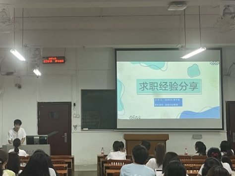 经济191班黄万羽同学分享了他的求职经验,他认为求职过程中要把握各种机会,包括秋招和春招,而且英语成绩也要达到一定水平。