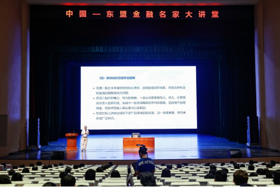 /中国-东盟金融合作学院举办的中国-东盟金融名家大讲堂在学校汇学堂开讲。本次讲座活动邀请到中国银行业监督管理委员会原主席、党委书记刘明康教授主讲。讲座围绕“低碳绿色发展”主题展开,对现有碳市场的发展思路进行深入分析和探讨。