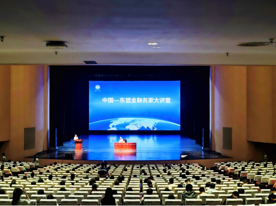 师生、广西银保监局等政府机构和区内外多家金融机构代表300余人参加活动。同时讲座面向区内外金融机构和东盟国家友好院校开放在线直播,有来自包括泰国清迈大学、川登喜大学、苏拉塔尼皇家大学、亚洲理工学院、泰国国家发展研究院,以及文莱、越南、马来西亚和印尼等国大学师生近200人在线参会。