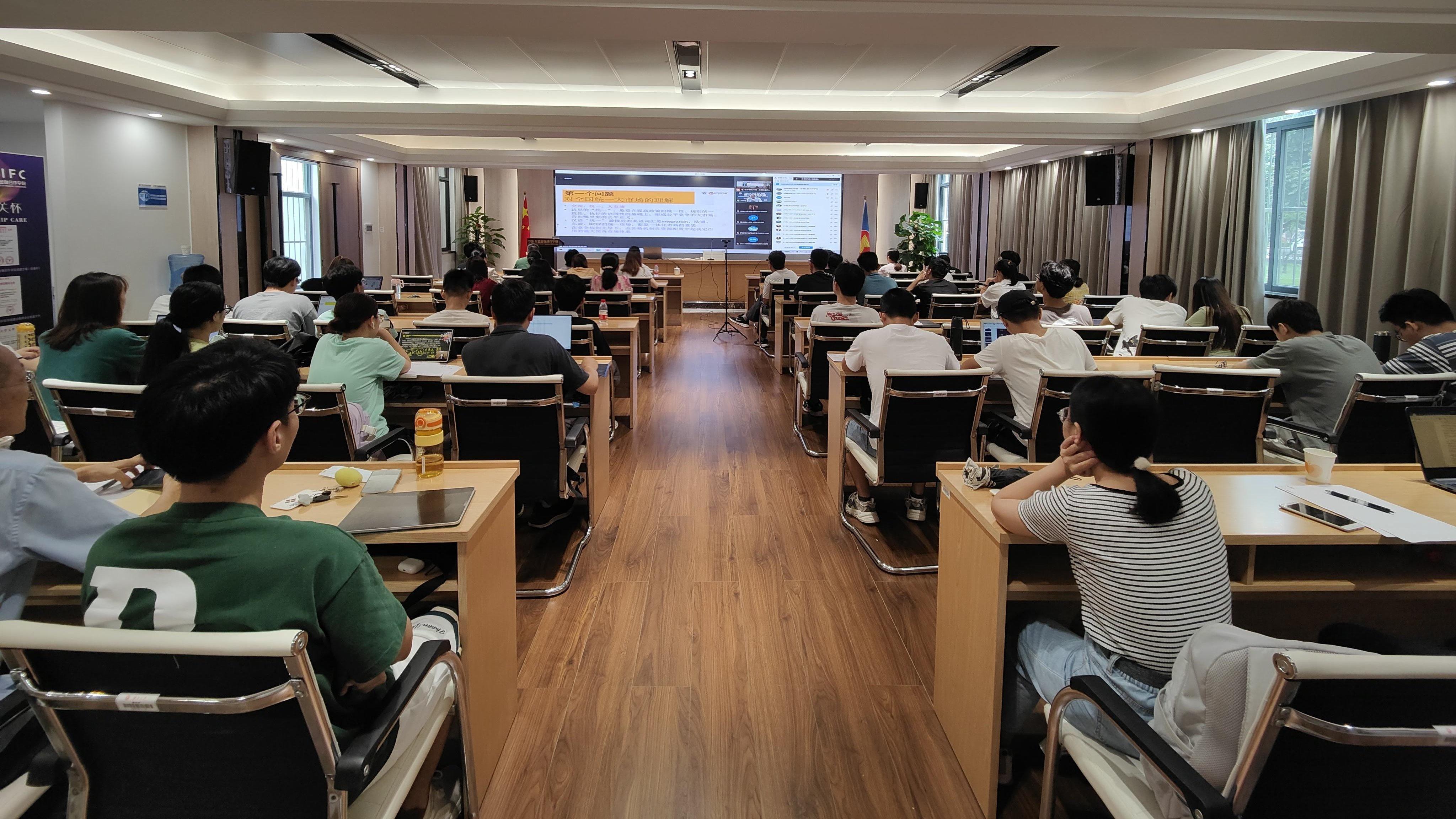 师生带来题为“建设全国统一大市场”精彩专题讲座。讲座采用线上线下相结合的方式展开,学院上百名师生参与,反应热烈,讲座由院长助理毛薇博士主持。