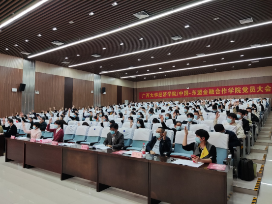 /中国—东盟金融合作学院委员会党员大会圆满完成了全部议程,在激昂的国际歌声中胜利闭幕。