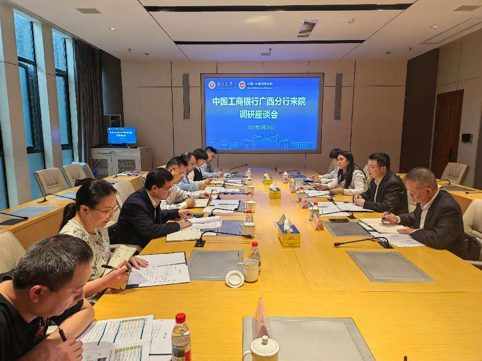 发展沿革、人才培养和学科建设等方面的情况,希望以此次交流为契机,积极推动校企合作。何韶军副行长介绍了工行广西分行的基本情况和工行“一带一路”银行间合作机制(BRBR)以及此次调研的主要目的,他希望发挥工行全球网络优势,结合性吧