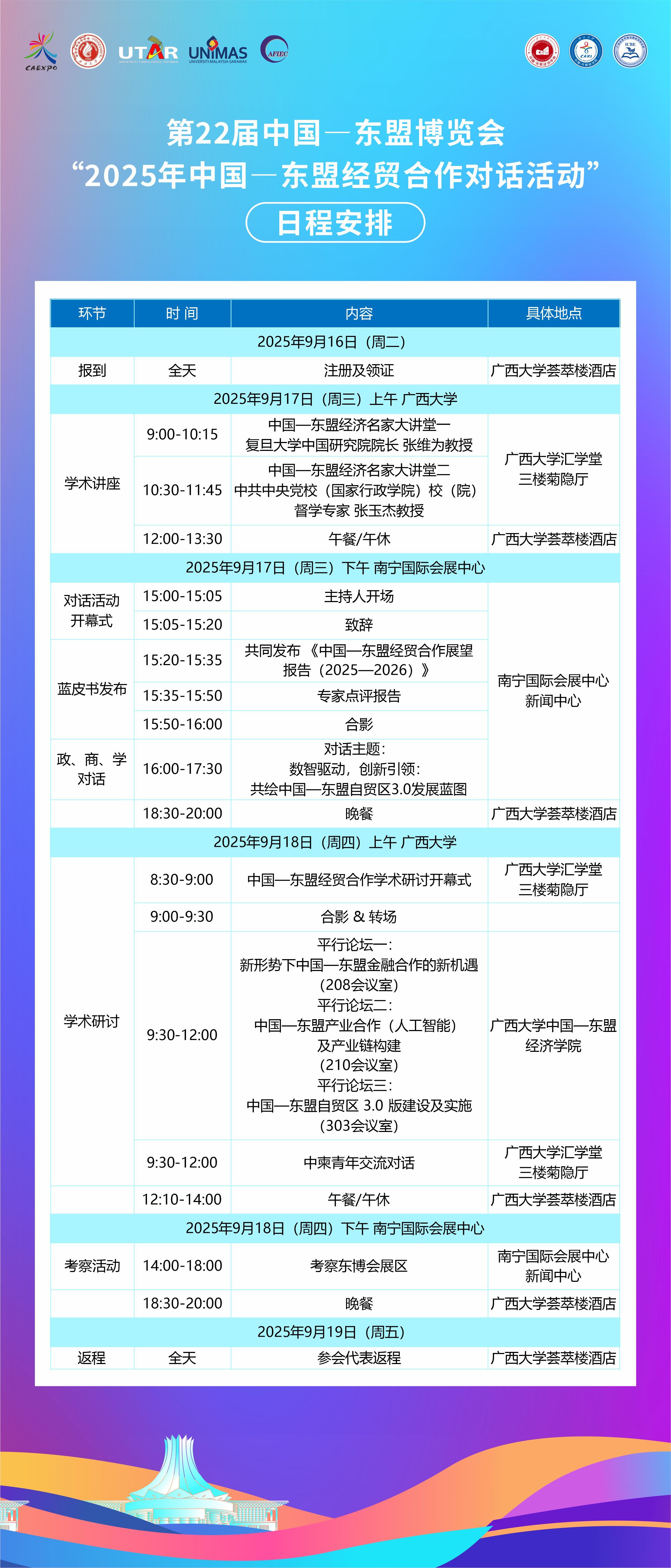 第22届中国—东盟博览会“2025年中国—东盟经贸合作对话活动”日程安排