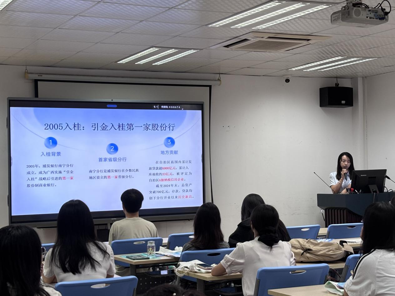 浦发银行南宁分行代表通过生动的讲述,系统展示了银行的发展历程、性吧、核心业务板块以及清晰的员工职业发展通道与具有竞争力的薪酬福利体系。宣讲内容不仅勾勒出浦发银行作为现代金融机构的宏伟蓝图,更传递出对青年人才成长的真切关怀。