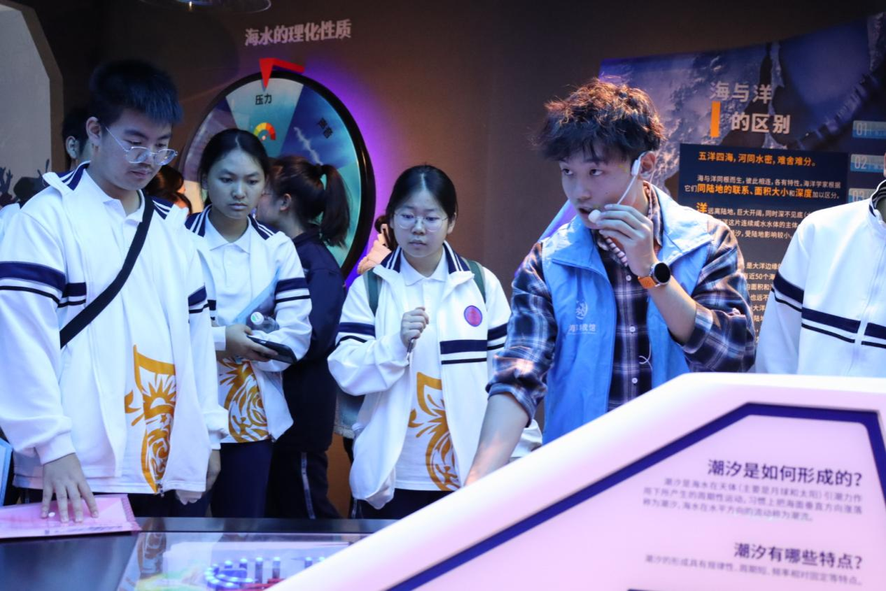 走进海洋科教馆,琳琅满目的海洋生物标本、贝类、珊瑚、矿石和水晶等展品,牢牢吸引了同学们的目光。在讲解员的讲解中,大家深入学习海洋知识,进一步拓展科学视野。