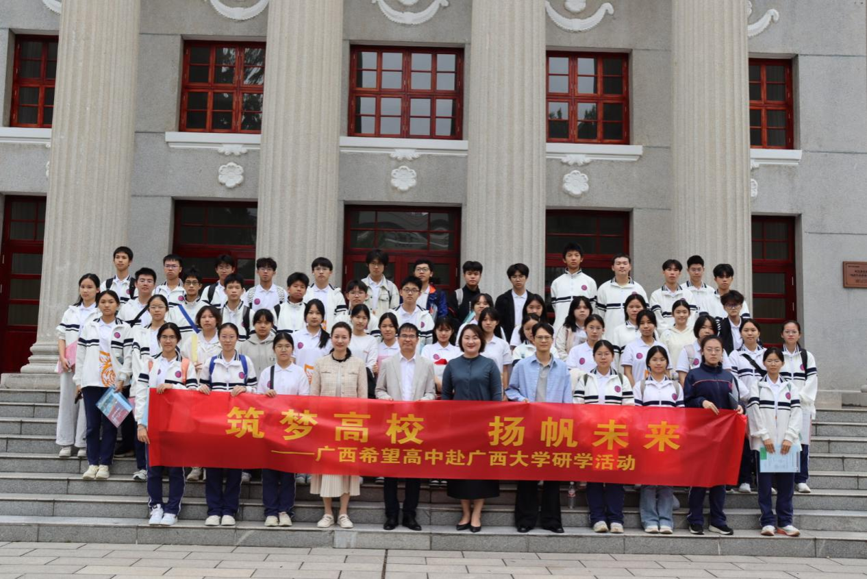为拓展高中生学术视野,激发未来学习的热情,架起高中生与我校之间的桥梁,2025年10月26日,广西希望高中年级校长汤海生、陆荣贝一行2名教师带领50名高一学生到我校开展“筑梦高校 扬帆未来”主题研学活动。学院党委副书记刘梦娟、金融系陈新建教授、本科教学办公室相关老师参加本次活动。