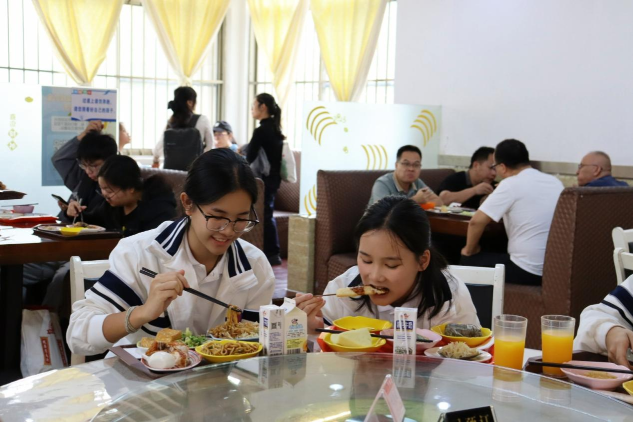 中午,师生们来到翠苑餐厅,品尝大学食堂的多样美食。丰盛的菜肴赢得一致好评,大家在欢声笑语中感受大学生的日常滋味。