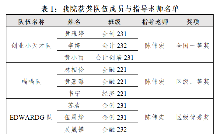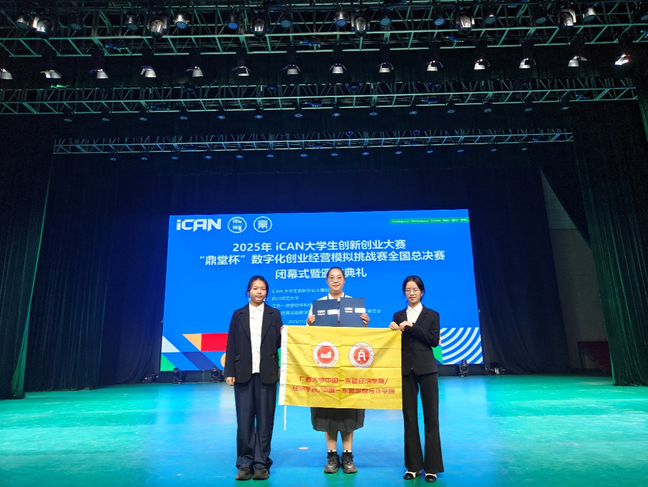 2023级本科生黄雅婷以及工商管理学院本科生李婷、黄小雨组成的“创业小天才队”成功晋级全国总决赛,并从全国137支晋级队伍中脱颖而出,最终斩获全国一等奖。同时,指导教师陈伟宏副教授荣获“优秀指导教师奖”。