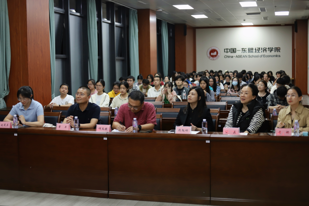 党委副书记刘梦娟介绍了学院在中国—东盟区域经济合作领域的研究特色与成果。弋泽龙则表达了在科研合作、平台共建与研究生联合培养等方面的合作意愿,希望充分发挥双方学科优势,拓展研究视野。