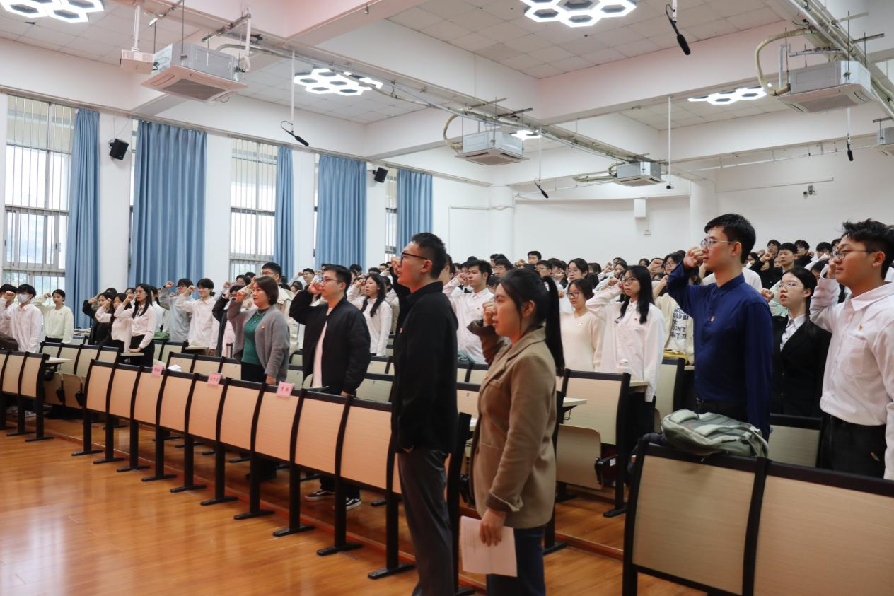 /中国—东盟金融合作学院在庄严的党旗下,隆重举行2025年新党员入党宣誓仪式。学院党委副书记刘梦娟出席仪式,全体新党员及部分师生党员代表共同见证了这一庄严而光荣的时刻,仪式由陈伊洁主持。