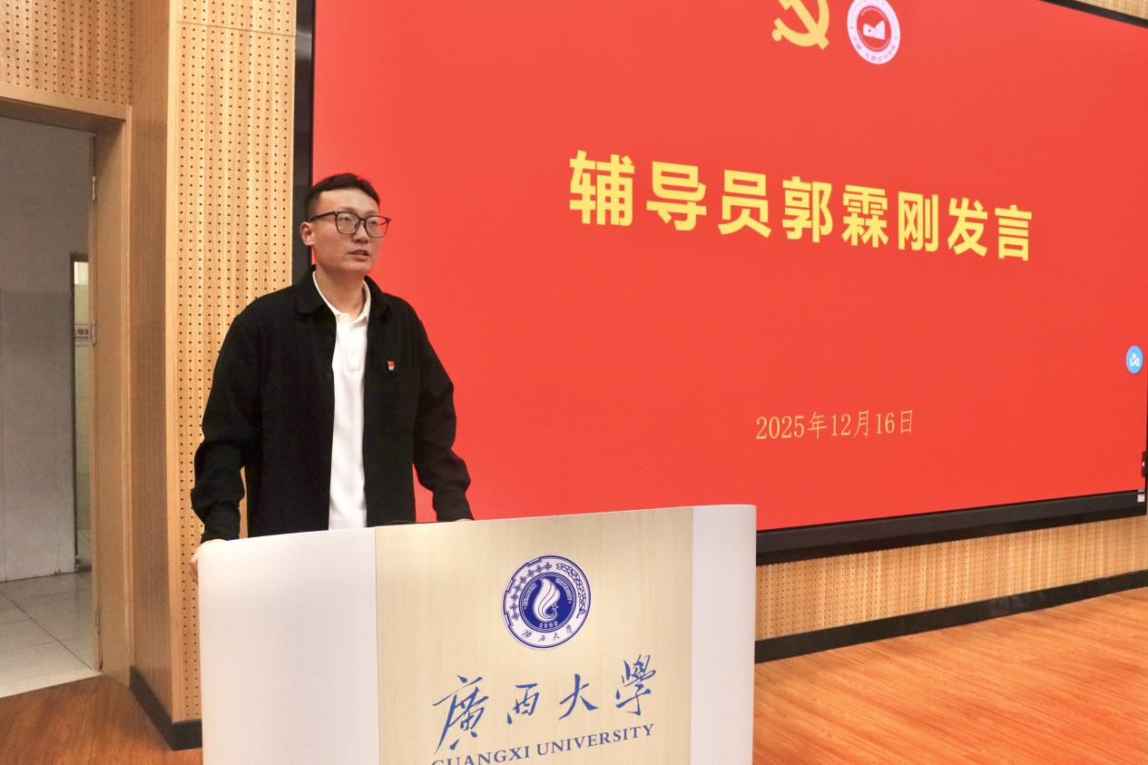 辅导员郭霖刚首先发言,他向全体新党员表示热烈祝贺,并回顾了大家从递交入党申请到正式入党的成长历程。他勉励新党员要坚定理想信念、牢记党的宗旨、发挥模范作用、严守党的纪律,真正成为“一面鲜红的旗帜”。