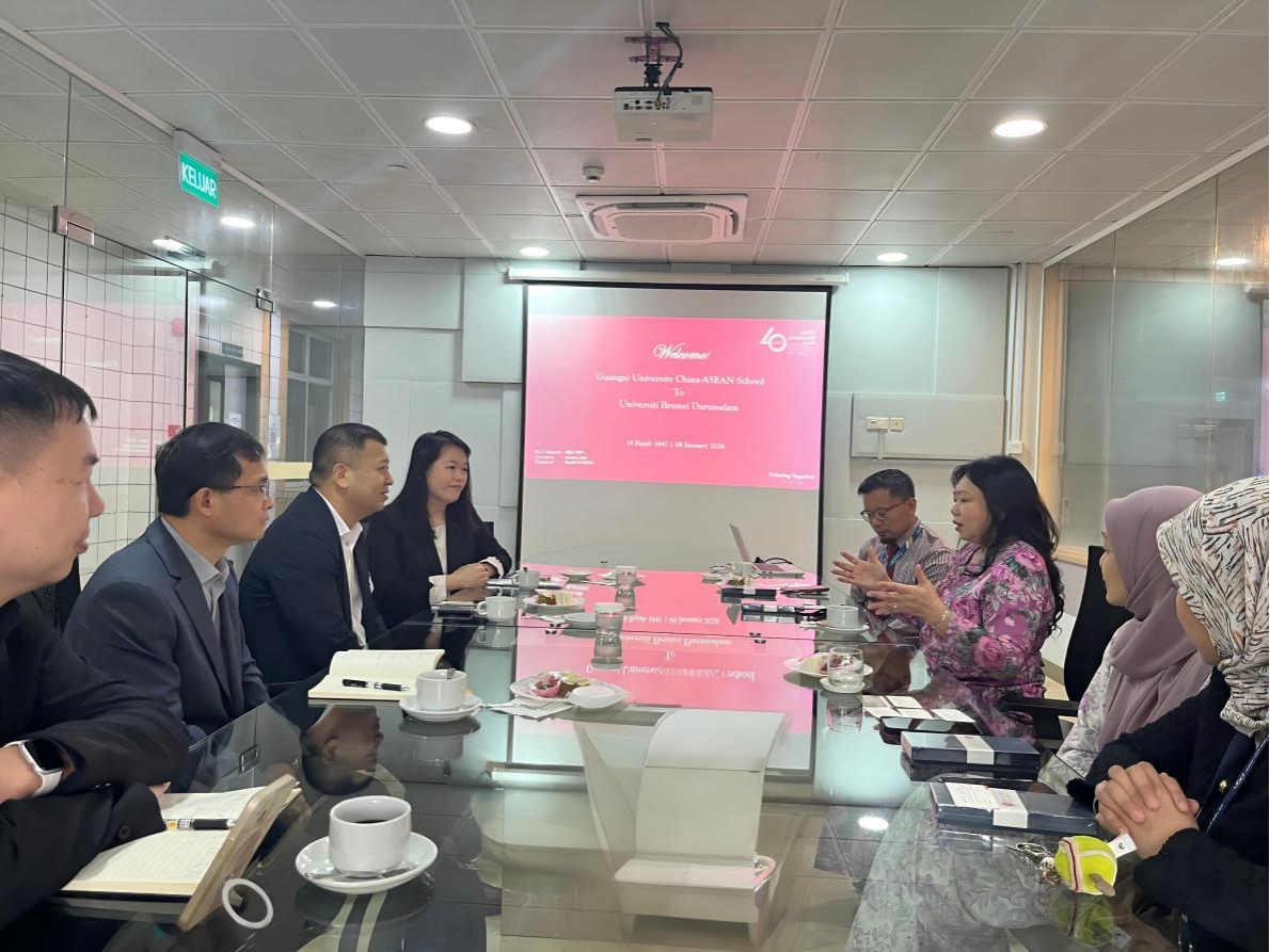 为深耕东盟经济研究,进一步拓展与文莱高校和相关机构在人才培养、经贸合作与人文交流等领域的务实合作,2026年1月7日至8日,学院党委书记姜玮率团一行6人访问文莱,调研团先后走访了文莱—中国友好协会、文莱大学、中国通信服务文莱子公司和文莱摩拉港有限公司等重要机构。