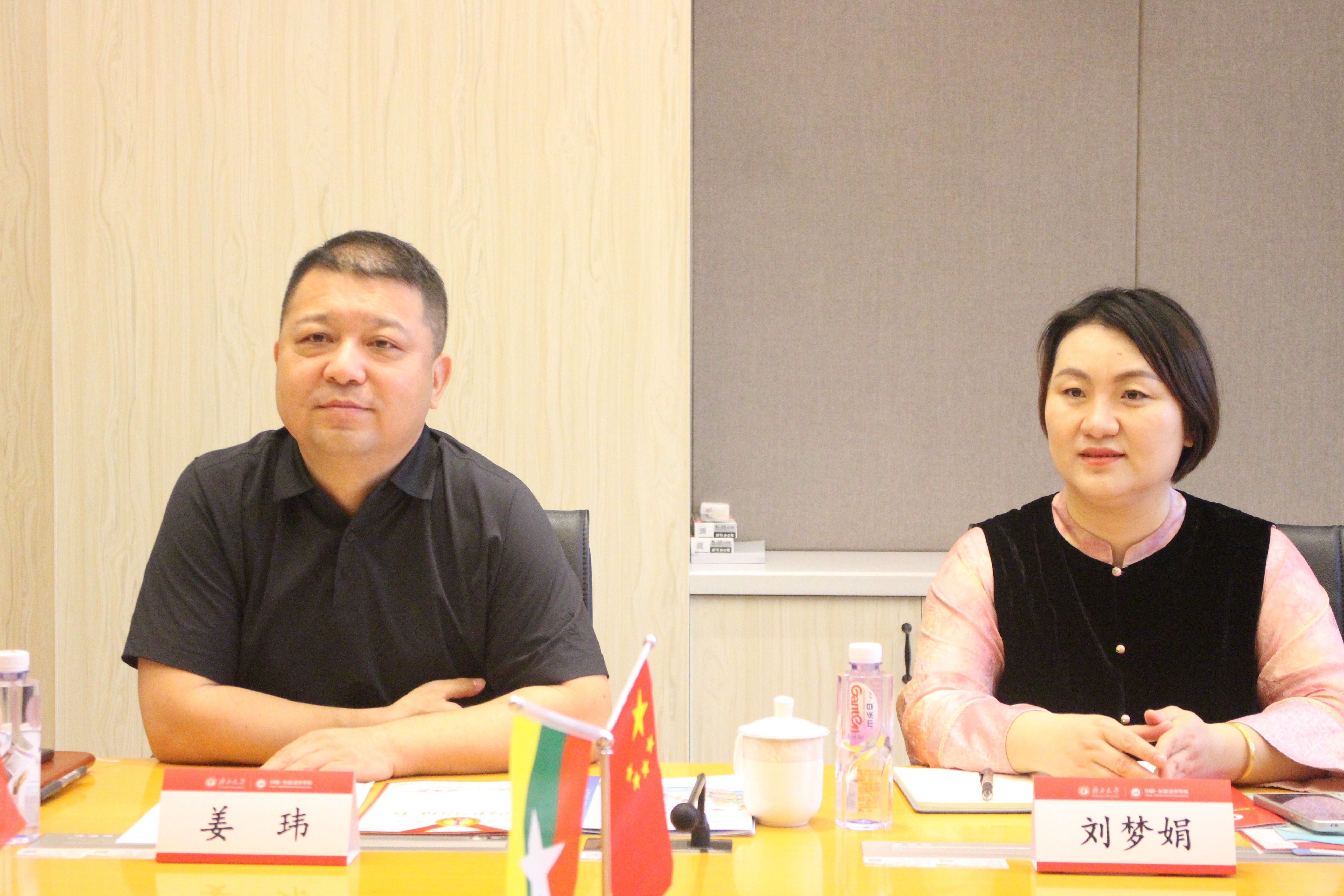 姜玮、刘梦娟听取对方的情况介绍