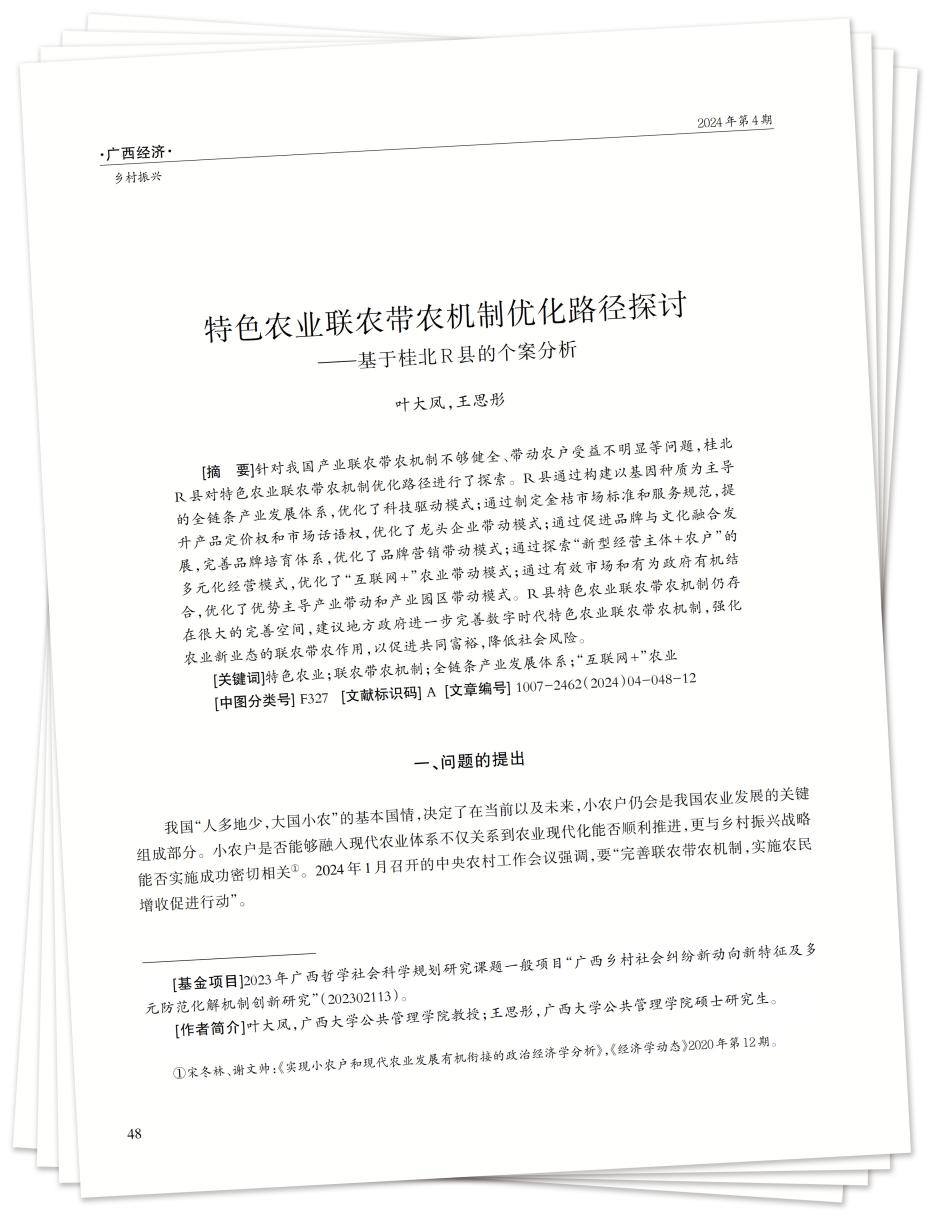 [摘 要]针对我国产业联农带农机制不够健全、带动农户受益不明显等问题,桂北R县对特色农业联农带农机制优化路径进行了探索。R县通过构建以基因种质为主导的全链条产业发展体系,优化了科技驱动模式;通过制定金桔市场标准和服务规范,提升产品定价权和市场话语权,优化了龙头企业带动模式;通过促进品牌与文化融合发展,完善品牌培育体系,优化了品牌营销带动模式;通过探索“新型经营主体+农户”的多元化经营模式,优化了“互联网+”农业带动模式;通过有效市场和有为政府有机结合,优化了优势主导产业带动和产业园区带动模式。R县特色农业联农带农机制仍存在很大的完善空间,建议地方政府进一步完善数字时代特色农业联农带农机制,强化农业新业态的联农带农作用,以促进共同富裕,降低社会风险。
