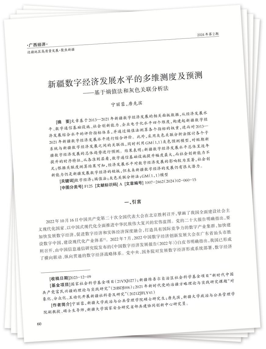 [关键词]数字经济;熵值法;灰色关联分析法;GM(1,1)模型