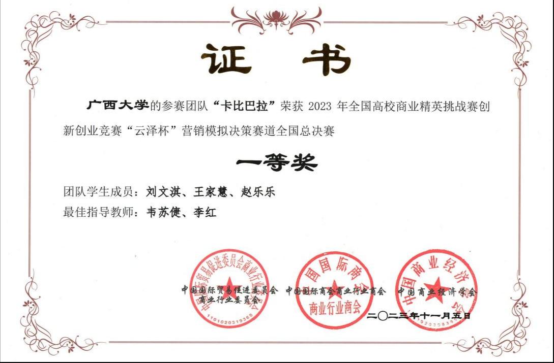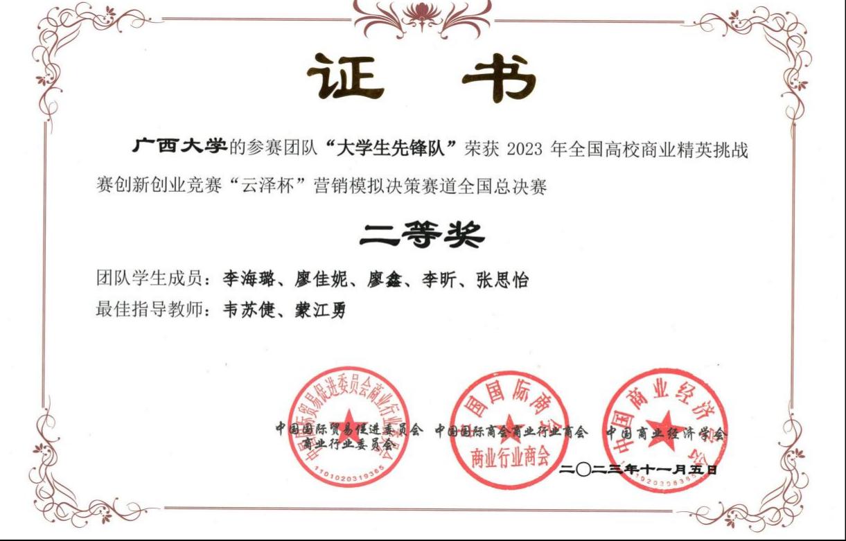 近日,2023年全国高校商业精英挑战赛创新创业竞赛“云泽杯”营销模拟决策赛道全国总决赛落下帷幕。该赛项从校赛到全国总决赛共计2000多支队伍参赛,在全国预选赛中,性吧