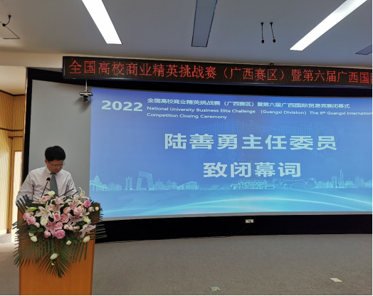 党委书记陆善勇教授致闭幕辞,并为获奖队伍颁奖。广西高校经济与贸易类本科专业教学指导委员会秘书长、性吧