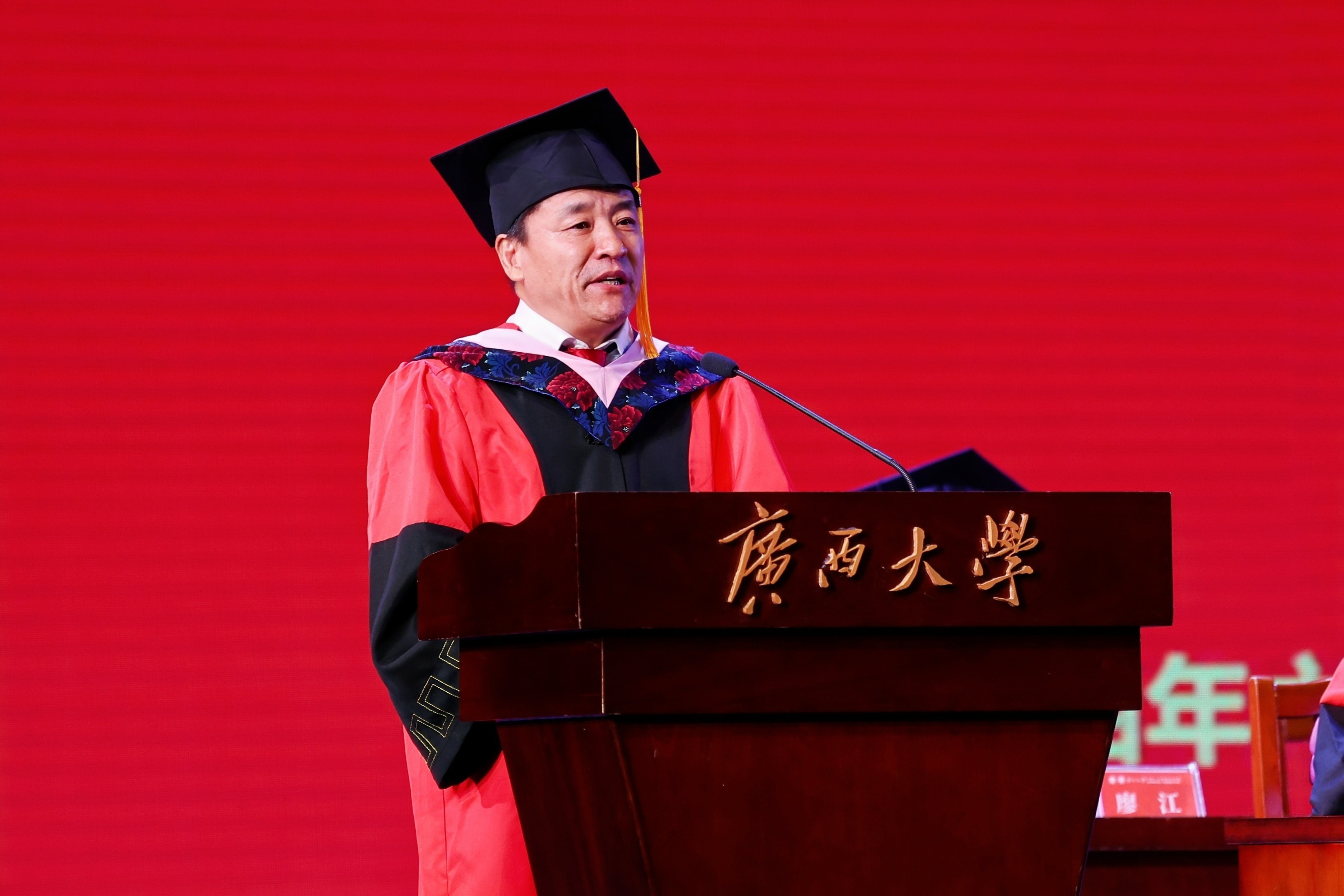 李光辉院长向全院2024届毕业生致毕业辞。他代表学院向同学们表示热烈祝贺和诚挚祝福,向悉心培养学生成长成才的家长和老师表达衷心的感谢。他对毕业生提出三点期望:一是乘风万里,心怀青云之志。希望身处新时代的同学们要坚定地树立起为国家和人民攻坚克难、博学报国的远大志向,在人生的舞台上开拓创新,建功立业;二是保持热爱,奔赴梦想。希望同学们认可自我价值,让热爱在奋斗中澎湃,在每一个可以创造价值的地方砥砺前行;三是突破自我,勇攀高峰。要坚定“把每一项平凡工作做好就是不平凡”的恒心,保持“把每一件小事情做好就是大事业”的匠心,用智慧和奋斗创造西大经院人新的精彩。他还表示,母校和性吧