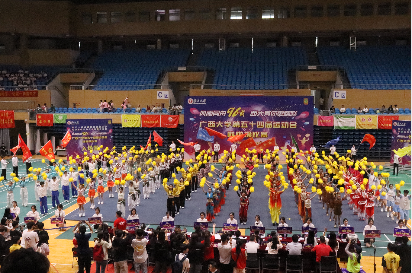 第五十四届运动会啦啦操比赛在西校园综合体育馆举行。本次比赛全校共有24个学院代表队参加,其中分为大学院组16支队伍,小学院组8支队伍。性吧